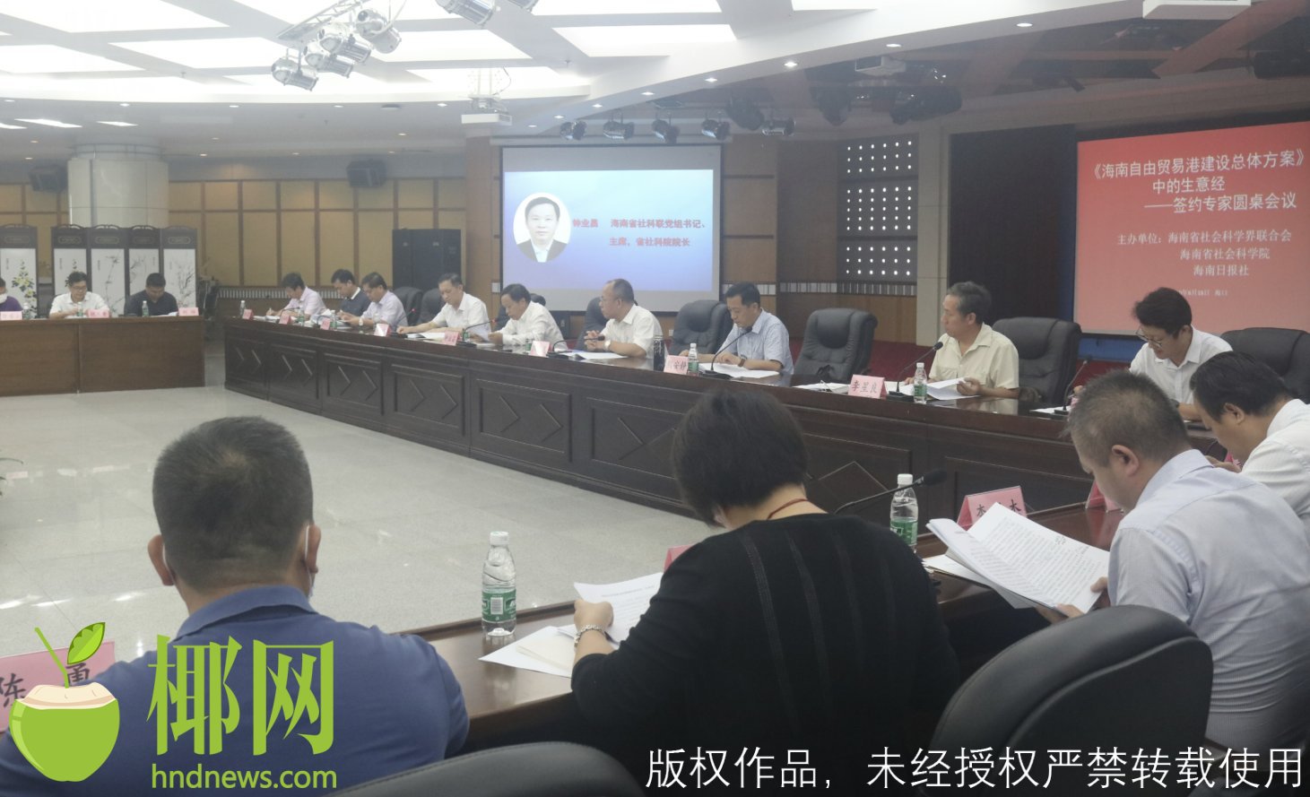 商報全媒體訊(椰網(wǎng)/海拔手機端記者 徐明鋒 攝影報道)6月18日上午,《海南自由貿(mào)易港建設(shè)總體方案》(以下簡稱《總體方案》)中的“生意經(jīng)”簽約專家圓桌會議在??谂e行,海南省社科聯(lián)黨組書記、主席,省社科院院長鐘業(yè)昌,海南日報社黨委書記、社長郭志民出席并致辭。省社科院簽約專家、研究人員,企業(yè)家代表等約50人參會。